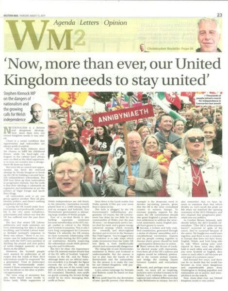 Nationalism is a divisive and dangerous ideology. Now, more than ever, our United Kingdom needs to stay united